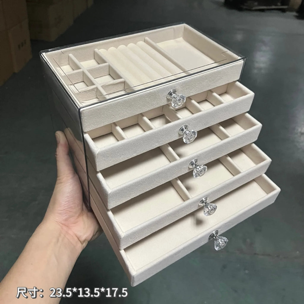 💎 Caixa Organizadora de Jóias em Veludo 5 Camadas – Luxo e Praticidade para suas Peças 💎