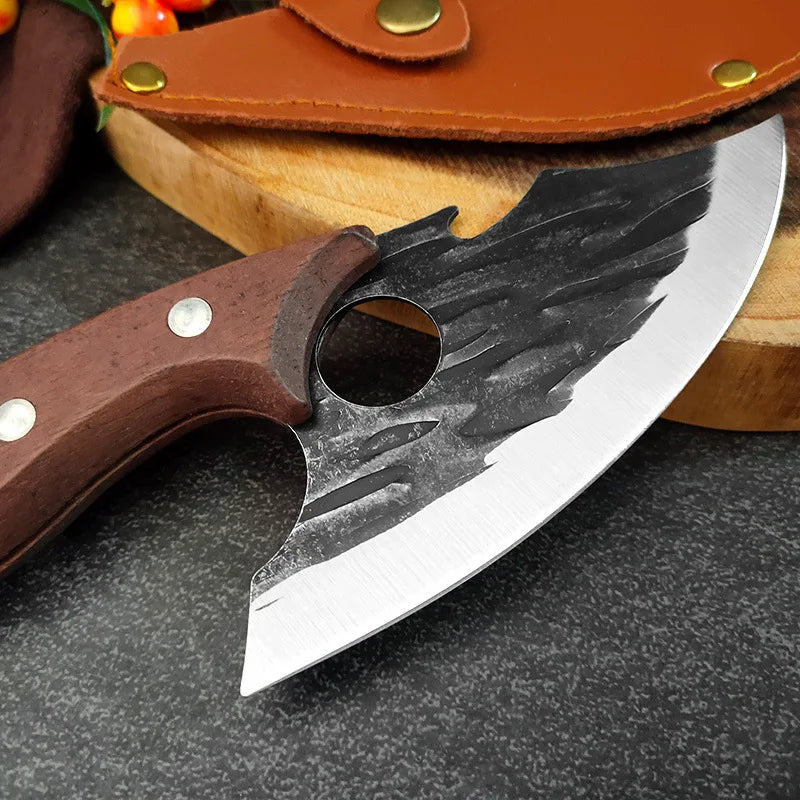 Aposte na potência de uma ferramenta compacta com a Faca Forjada Pequena de Cozinha, perfeita para cortes de precisão como desossar carnes, limpar peixes ou fatiar com agilidade. Com lâmina forjada à mão e design com anel no cabo, ela oferece firmeza e controle total, mesmo em cortes delicados. Versátil, resistente e com visual marcante, é a escolha certa para quem busca desempenho profissional em cada detalhe da cozinha.
