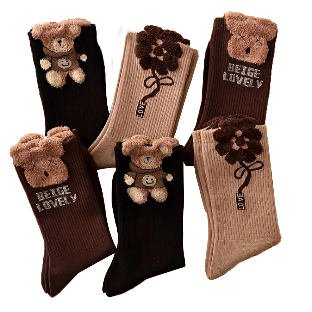 Kit com 3 Pares de Meia Desenho Urso Super Quentinho - Linha Premium - Cano Alto Feminino